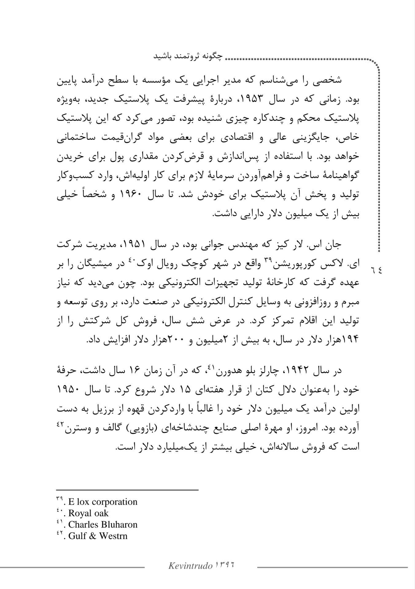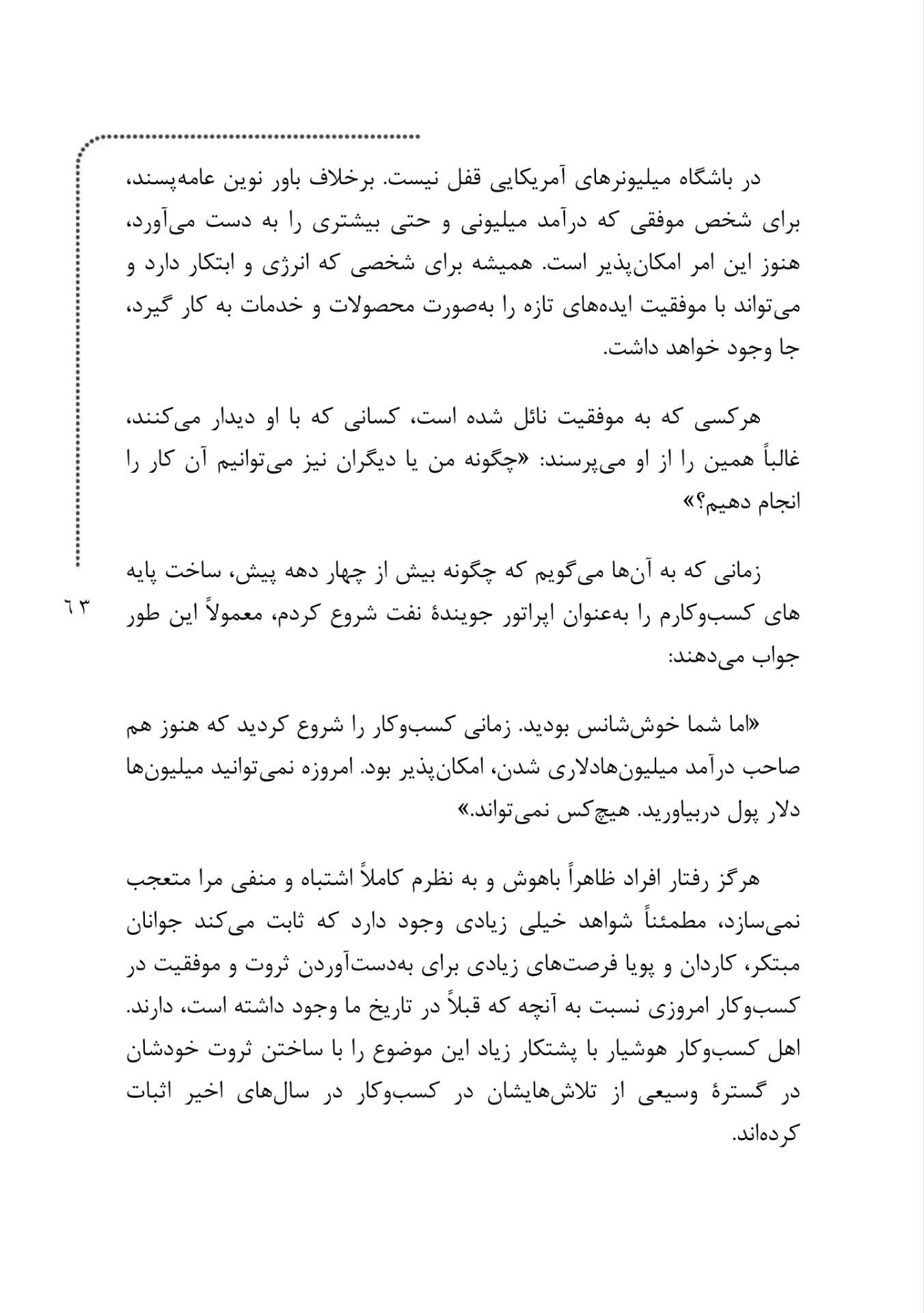 او معتقد بود افراد ثروتمند کسانی هستند که فرصتها را میبینند و با شجاعت، اما با حسابگری وارد عمل میشوند.
