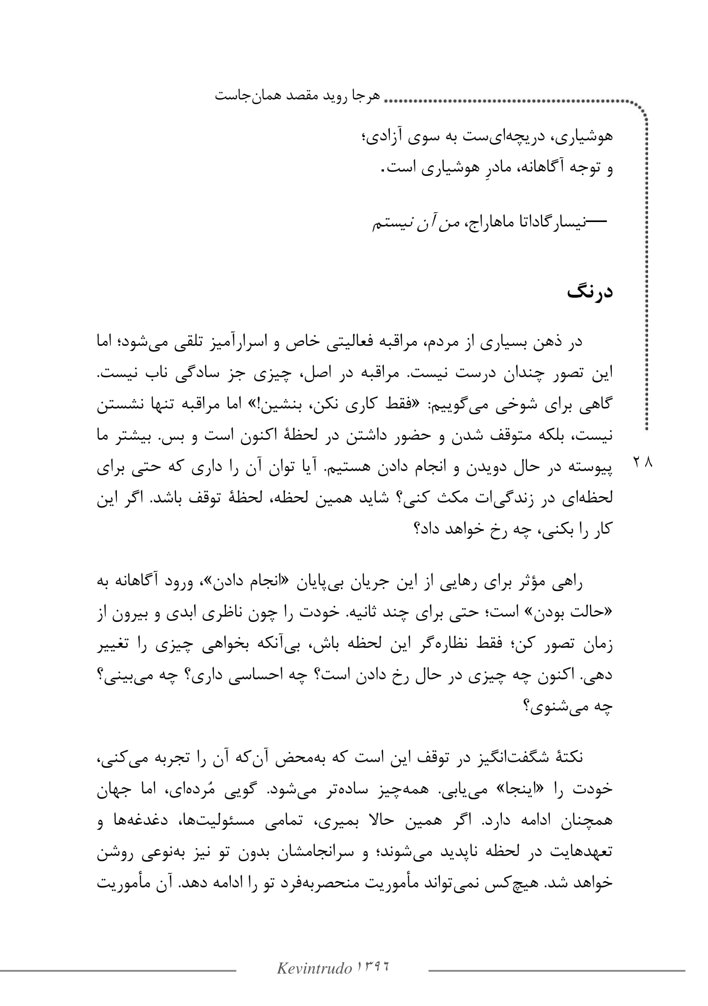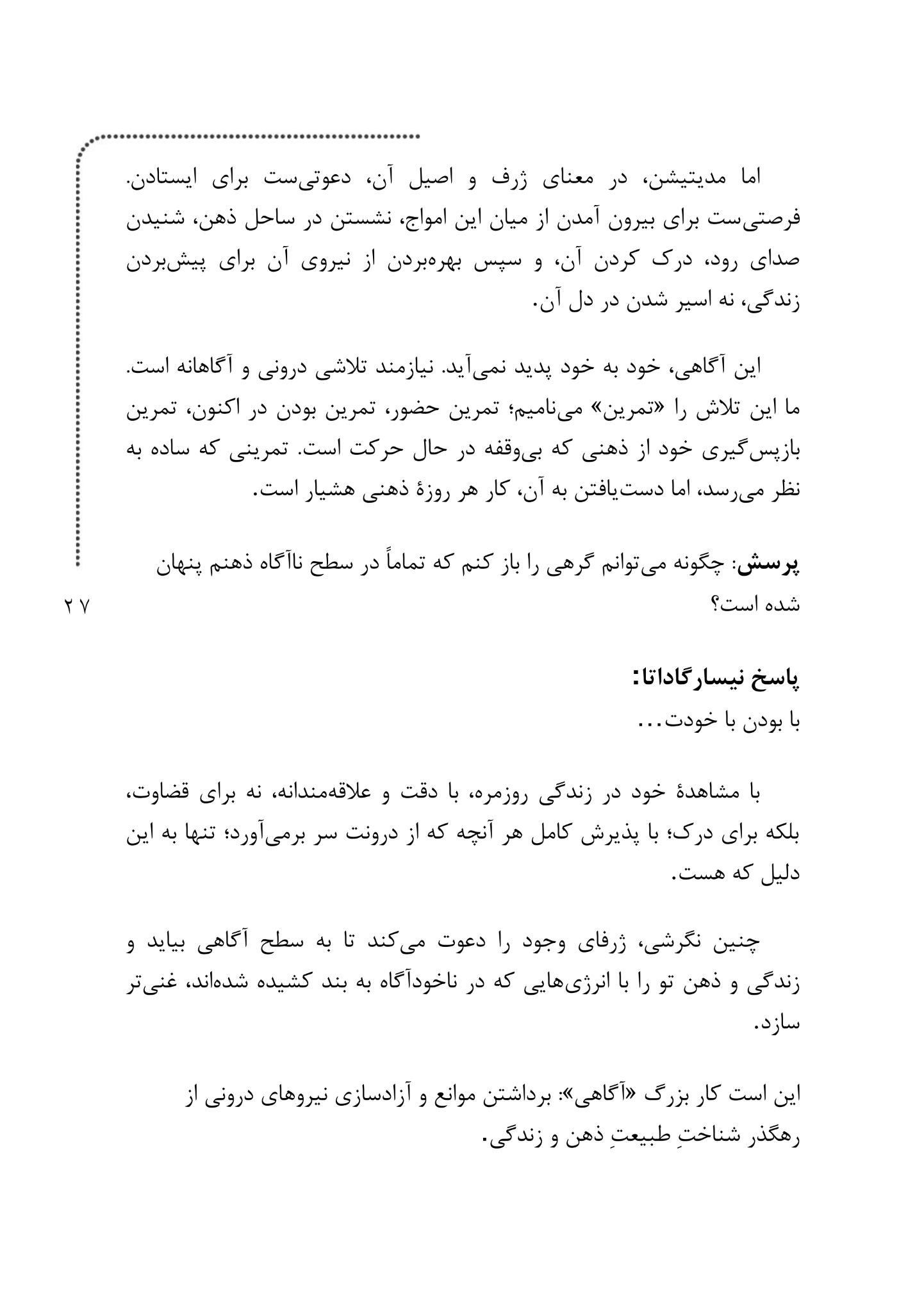 در این رودخانه ی ،جاری هیچ چیز بیهوده و تهی نیست. همه چیز معنا دارد حتی سکوت و برای دیدن این معنا فقط به یک چیز نیاز داریم آگاهی آگاهی همان لنزی است که به ما اجازه میدهد زیبایی های پنهان زندگی را با وضوح ببینیم زیبایی هایی که همواره در کنارمان بوده اند اما گاه در شتاب زیستن از نظر دور مانده اند.
